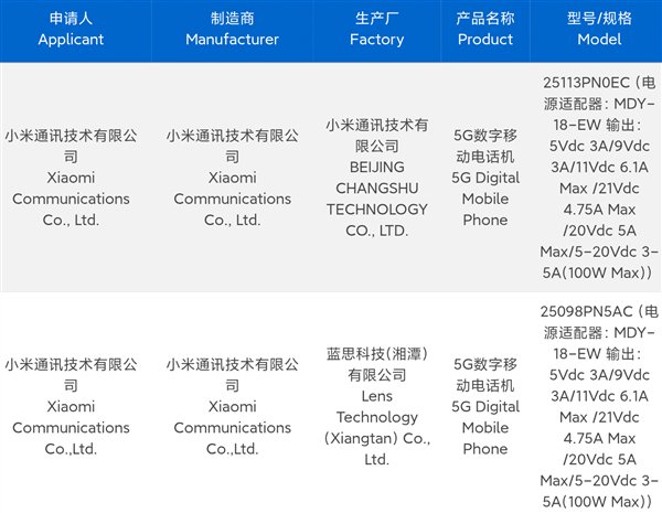 快科技8月28日消息,今天,小米16系列获得3C认证,这次入网的机型共有3款,型号分别是25098PN5AC、2509FPN0BC、25113PN0EC,全系标配100W有线闪充。