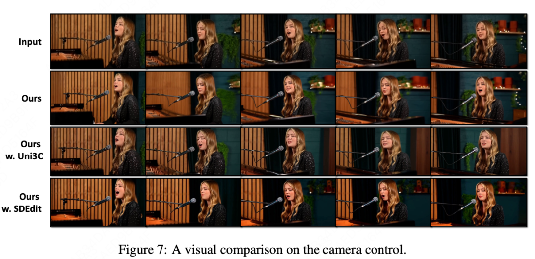 此外,该模型还能通过集成 SDEdit 或 Uni3C 等插件,实现对源视频中微妙的镜头运动(camera movement)的精确保留。这一点至关重要,因为它确保了生成的视频不仅人物动作自然,连画面的构图和运镜都与源视频保持一致,进一步提升了视频的真实感和连贯性。