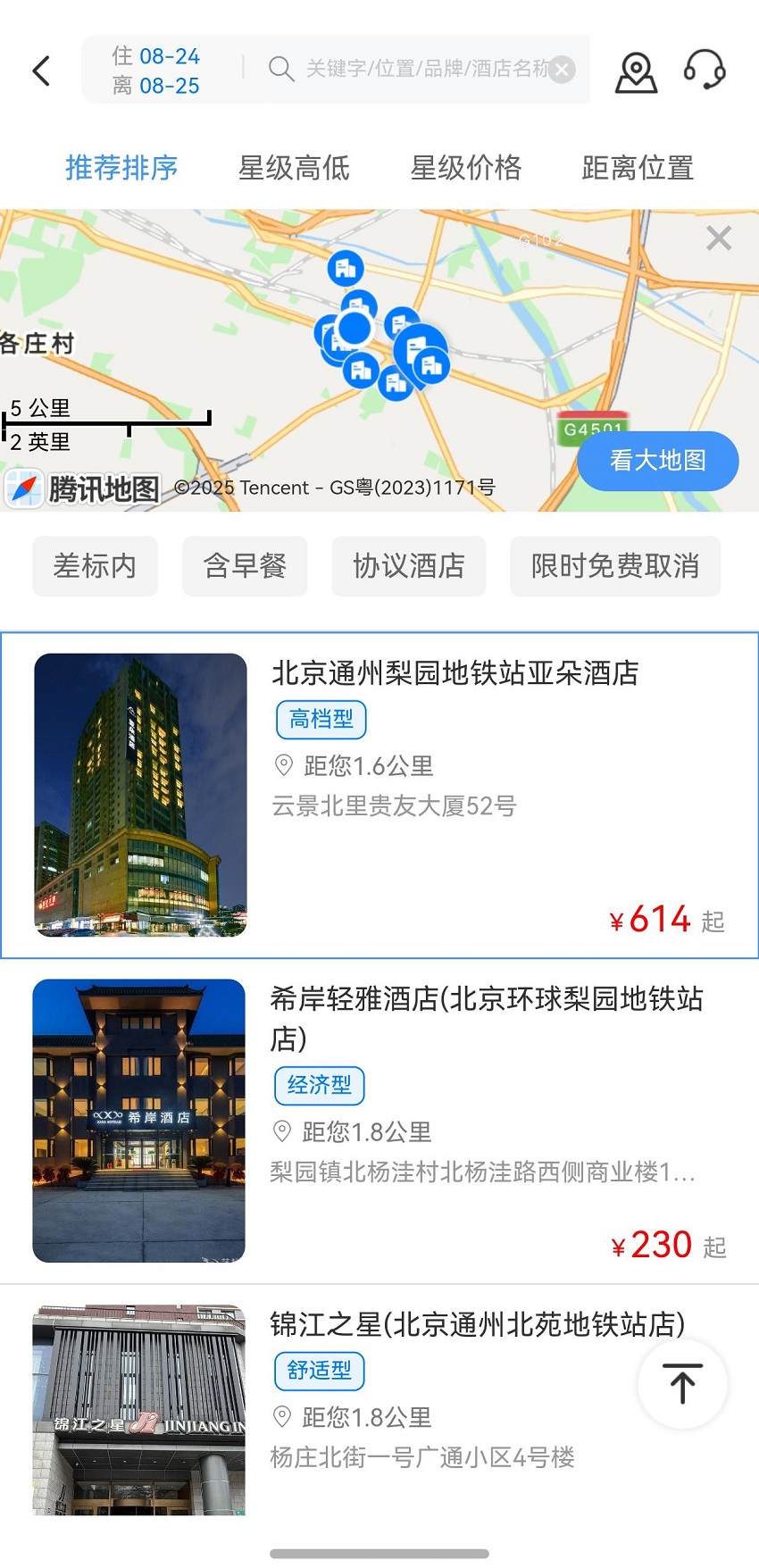 • 酒店信息随时分享:通过接入腾讯地图,用户可便捷筛选周边酒店,还可将酒店信息分享至微信,实现行程同步与工作协同。