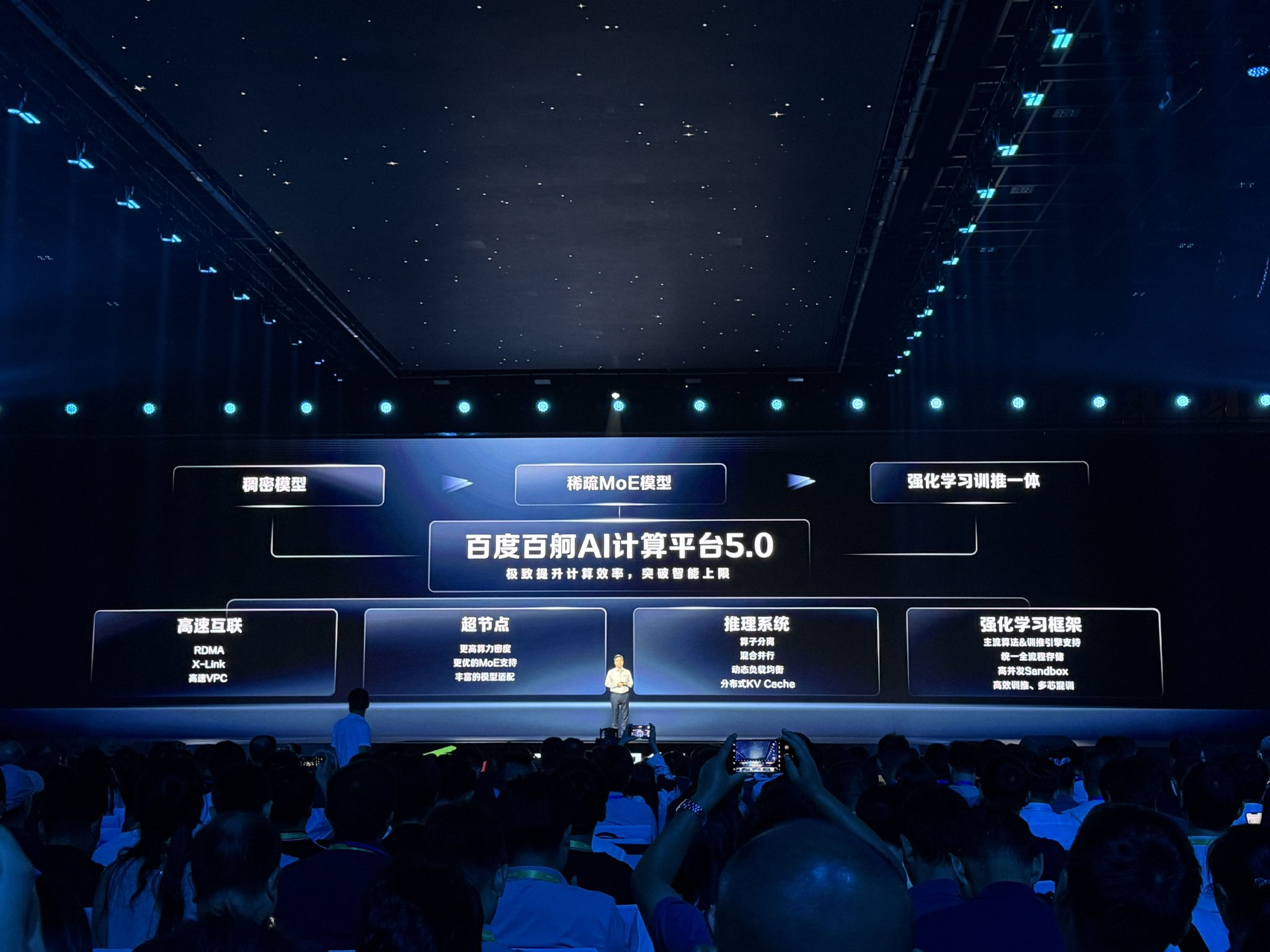 网络上,通信更快,延迟更低,提升模型训推效率;算力上,昆仑芯超节点上线,超级算力正式可用;推理系统上,通过“解耦”“自适应”和“智能调度” 三大核心策略,提升吞吐,降低延迟;训推一体上,发布百舸强化学习框架,极致压榨算力资源,提升训练、推理效率。