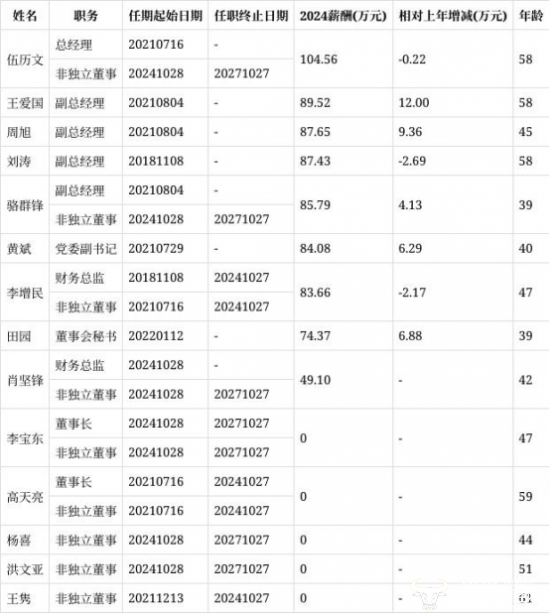 从薪酬看,董事和高级管理人员合计领取报酬746.16万元,平均薪酬87.63万元,年薪中位数为87.43万元。其中,总经理伍历文薪酬最高为104.56万元,董事会秘书田园薪酬为74.37万元。从薪酬的涨幅上看,总经理伍历文有所降薪,相对于上年降薪0.22万元。