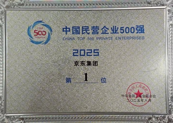 快科技8月28日消息,近日,全国工商联发布2025年中国民营企业500强榜单,京东集团连续第四年位居总榜第一位,并蝉联服务业榜单第一位。