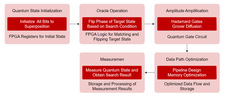 量子比特系统的模拟与优化:微算法科技在仿真过程中重点模拟了Grover搜索算法在量子比特系统中的运行情况。通过优化 FPGA 架构与数据路径配置,极大地提高了仿真效率。
