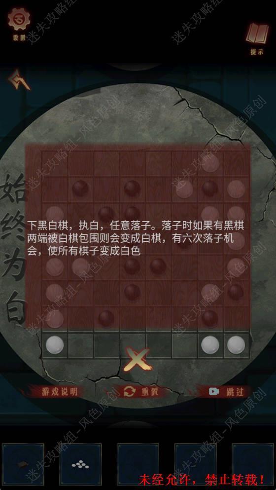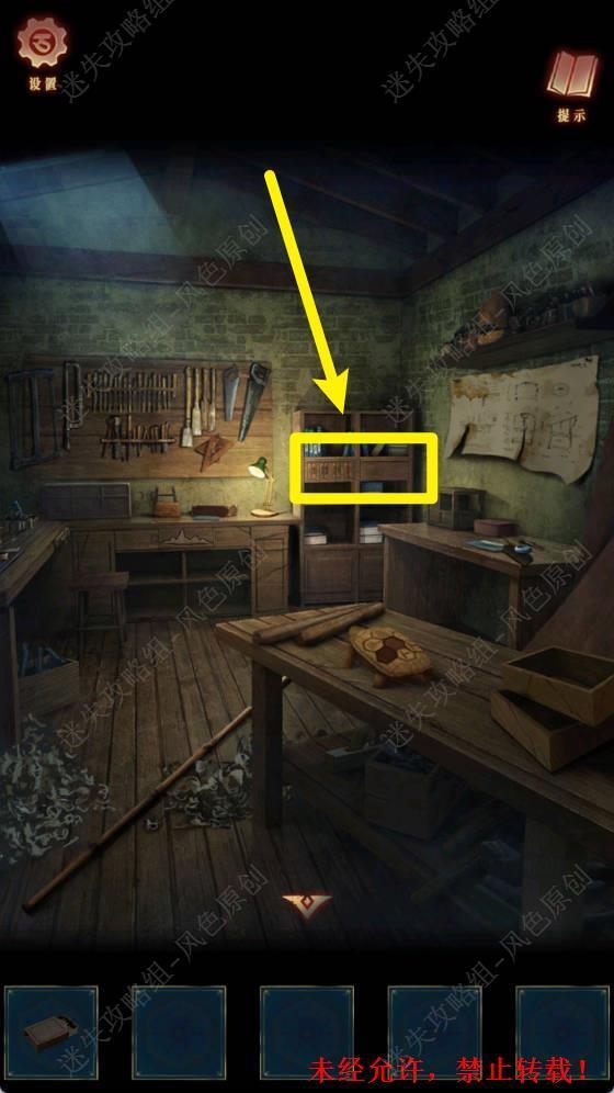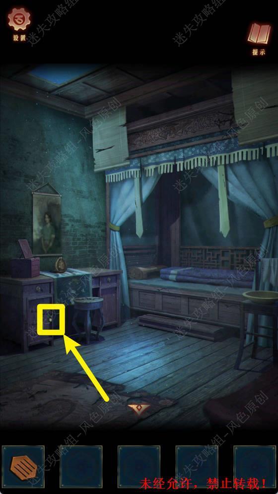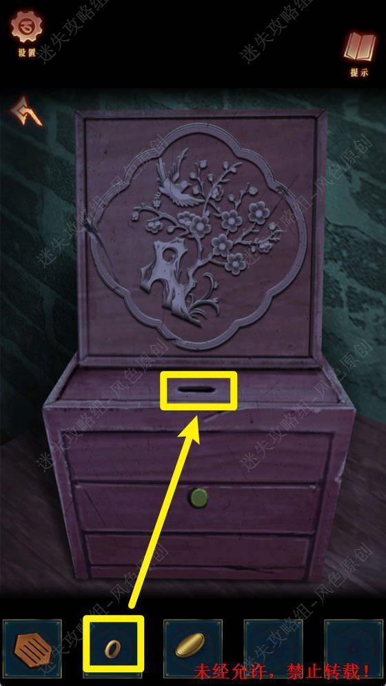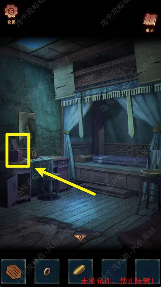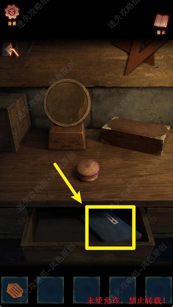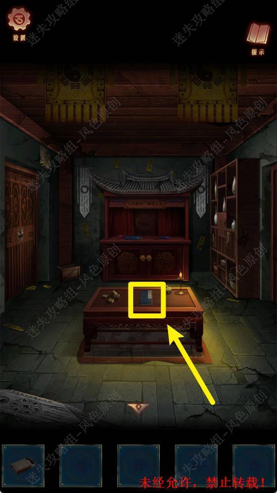 点击书架上的书,可见封面文字为德、泽、济、仁。根据这一提示,调整下方八个牌子,随后取得拨浪鼓,并查看山水画。