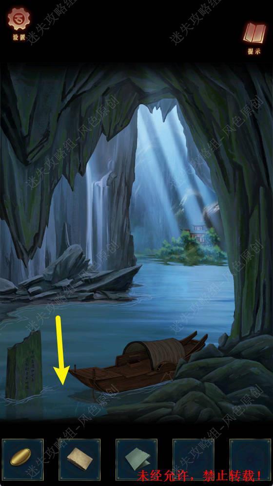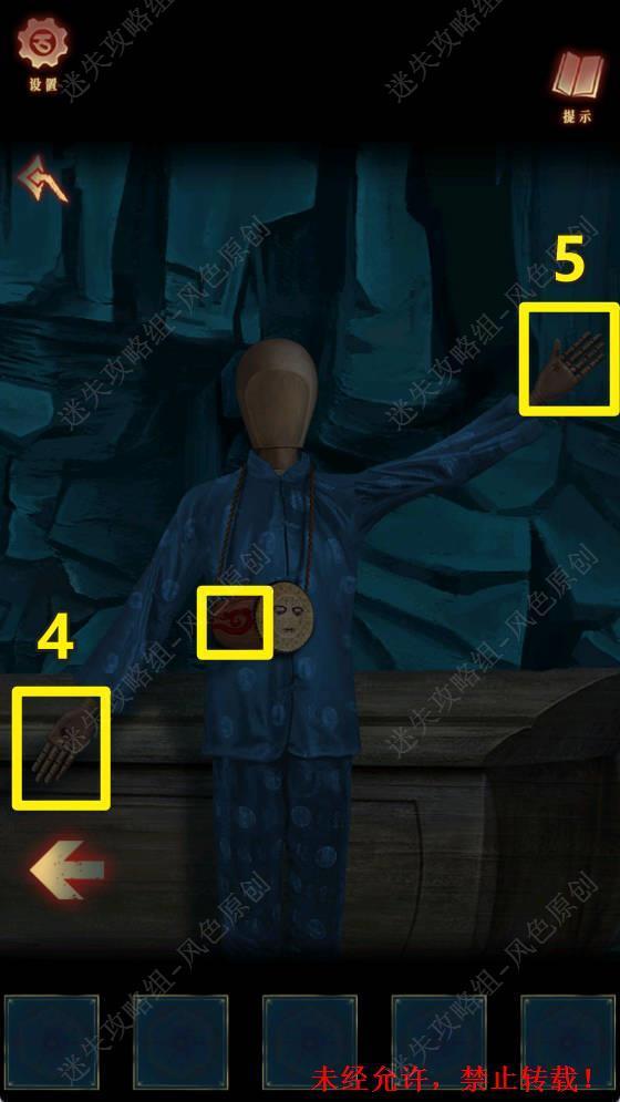 查看带有箭头的纸条提示,依照左右中左右的顺序选择洞口进入。