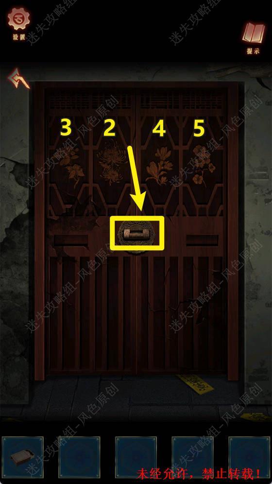 根据门上花朵数量及开花季节提示,输入密码3245,开启门进入。