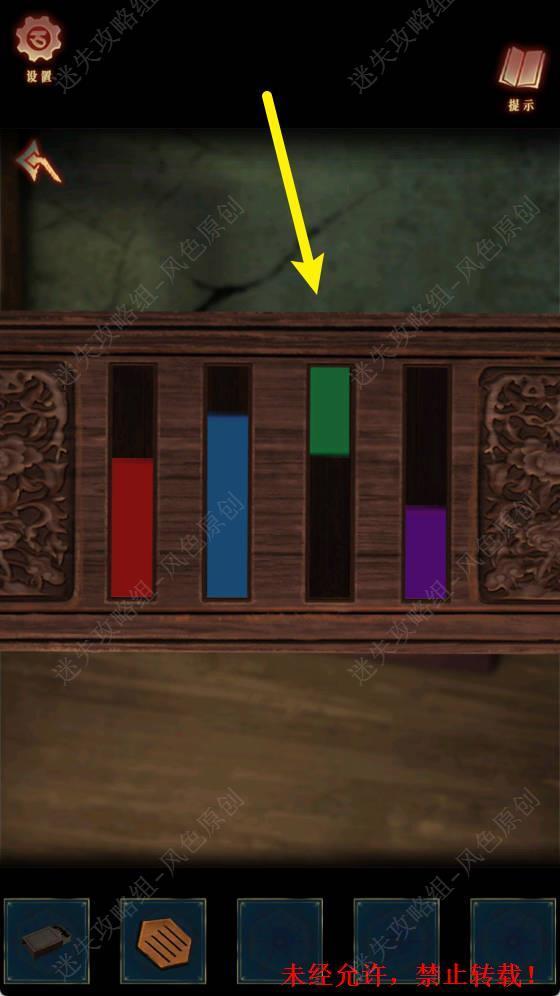 按照人偶位置,调整盒子上的彩色机关至下图所示状态。