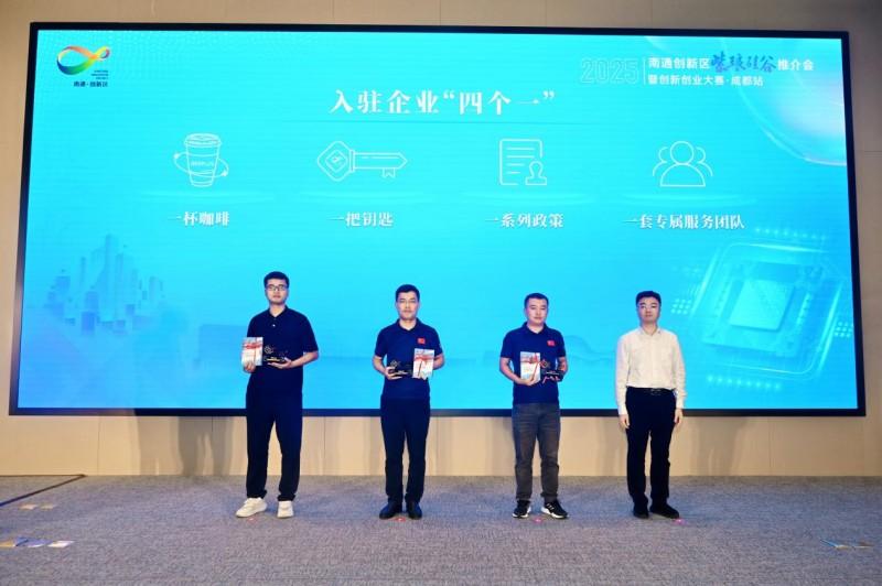 本次活动上,南通创新区也为三家来自电子科技大学的博士创业企业——南通星锐信科技有限公司、南通电芯通科技有限公司、南通昇目微电子科技有限公司准备了“一杯咖啡、一把钥匙、一系列政策、一套服务团队”的“四合一”入驻大礼包,象征着从资源对接、空间支持、政策赋能到服务保障的全生命周期陪伴。