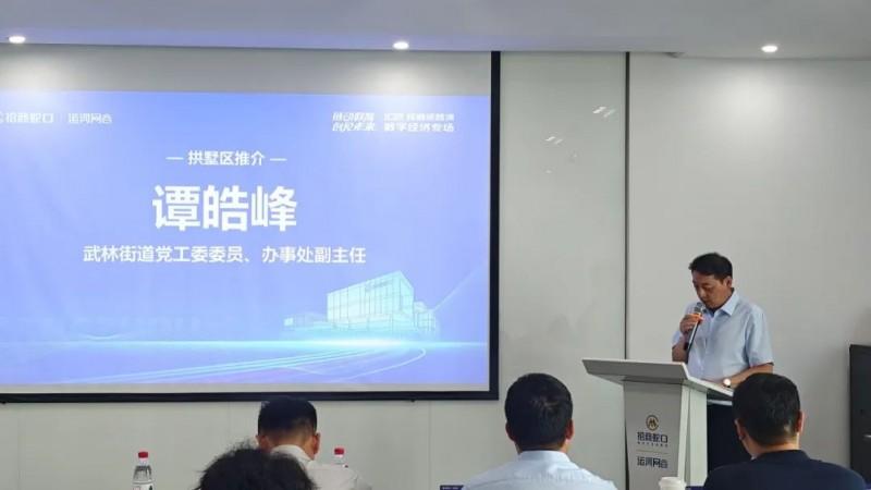活动伊始,武林街道党工委委员、办事处副主任谭皓峰围绕“时尚之都、数字新城、运河明珠”三大维度,全面推介区域营商环境优势,展现了拱墅区作为杭州中心城区的产业实力与开放姿态;并重点阐述了武林街道与招商蛇口·运河网谷的深度合作成果,为创新项目与资本注入坚定信心。
