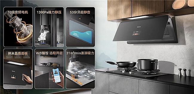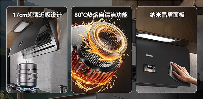 开放式厨房对颜值的要求极高。没有人愿意在通透、明亮的空间里装上一台笨重突兀的油烟机,它不仅占地方,还破坏整体格调。海信智魔方S2Ultra烟机的17cm超薄近吸设计,宛如一块精巧的艺术品,紧贴橱柜却毫不突兀;广翼拢烟设计则能将油烟范围大幅覆盖,确保每一缕油烟都被有效吸走。外观与功能的完美融合,让它不仅是厨房的“空气守护者”,也是空间里的“点睛之笔”。
