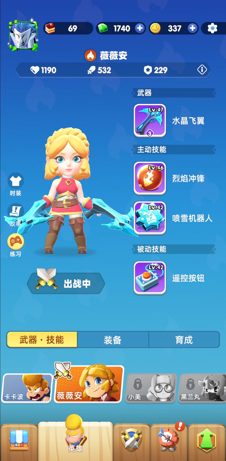 在英雄选择方面,每个角色都有独特的天赋。目前版本中,忍者和小美最为常用,二者在闪避机制上具有地形优势。骑士天赋更适合首发,利于近战发挥。忍者需要投入资源获取,小美则依赖碎片收集。我目前正在努力培养最后一个男角色,因个人偏好不太喜欢使用女性角色,也希望厂商能关注到这类需求。