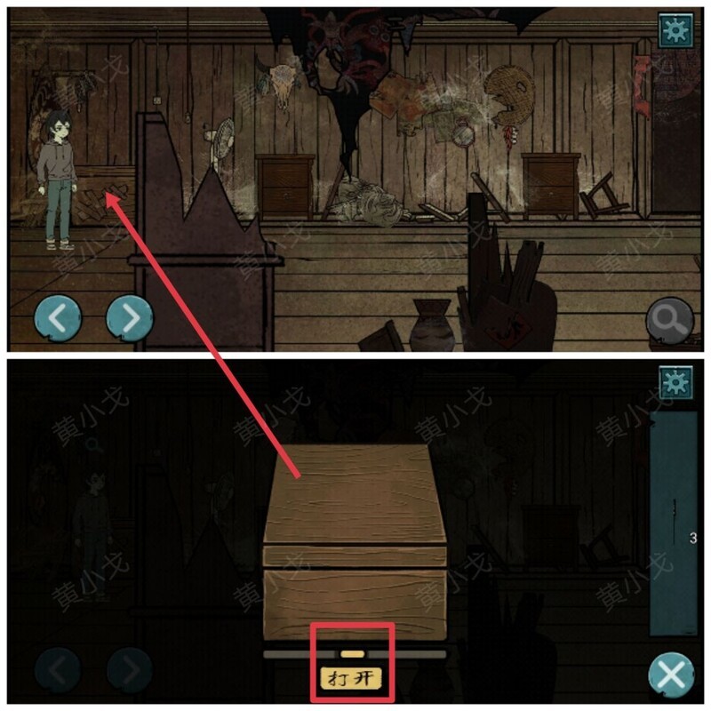 二楼中间房间,点击左侧大箱子,完成小游戏开启箱子。