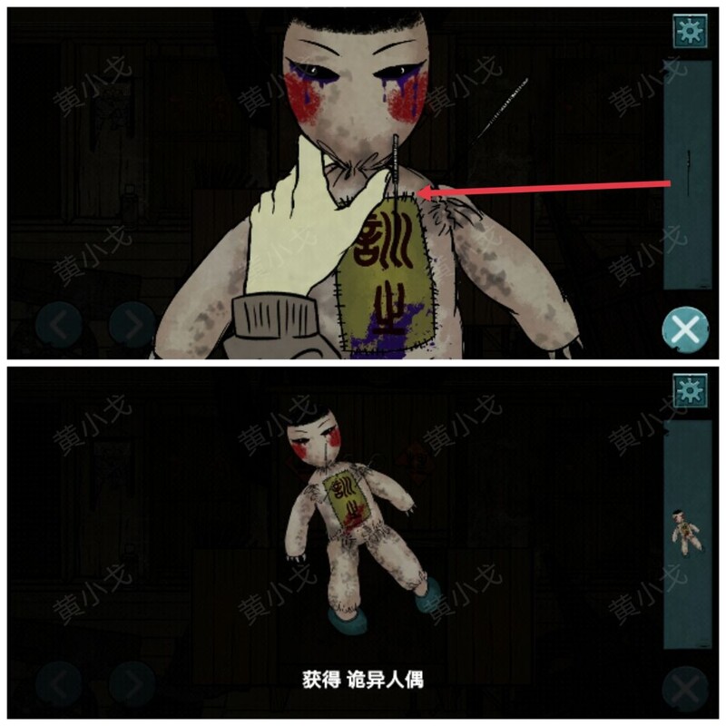 用银针刺入布娃娃,可得到诡异人偶(注意:别打开旁边两个柜子,里面有蟑螂和老鼠,非常恶心)。