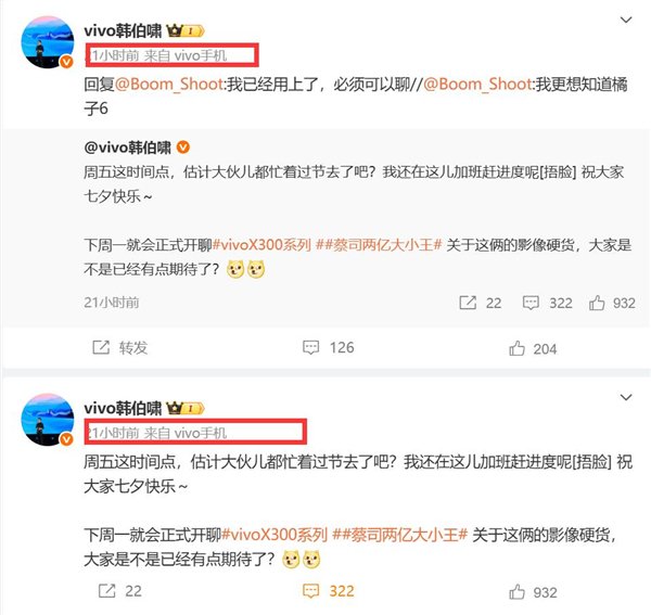 快科技8月30日消息,vivo产品经理韩伯啸预告,vivo X300系列将在下周正式开启预热,韩伯啸称其为“影像硬货”。