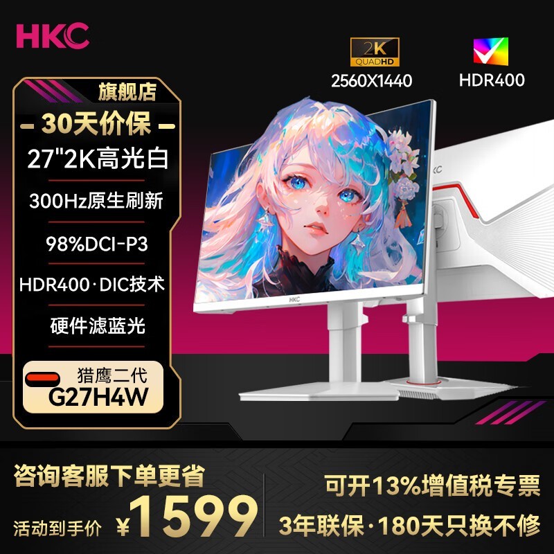 HKC猎鹰2代G27H4Pro显示器特惠1319元