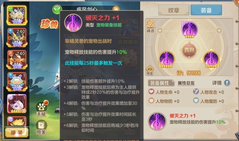 挑战魂兽之庭时,若使用非魂兽宠物,建议为其装备一套四星以上的破灭之力套装,无需强化或洗练属性,仅需激活一级套装效果即可。