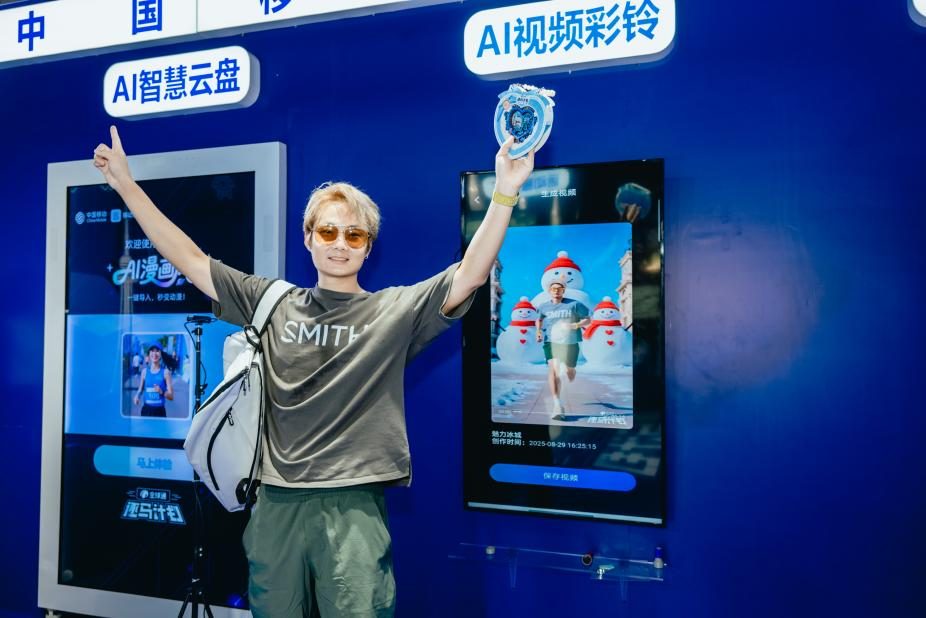 赛前马拉松博览会上,跑者争相体验AI移动云盘的“3D人偶”技术,只需拍张照片,即可生成独具个人特点的专属3D卡通形象,留下一份生动又独特的数字纪念品!赛事期间,在5G-A网络与全球通专属保障下,4K高清直播让松花江畔的美景与哈尔滨大剧院的风采完美呈现,云端观众仿若身临赛道。