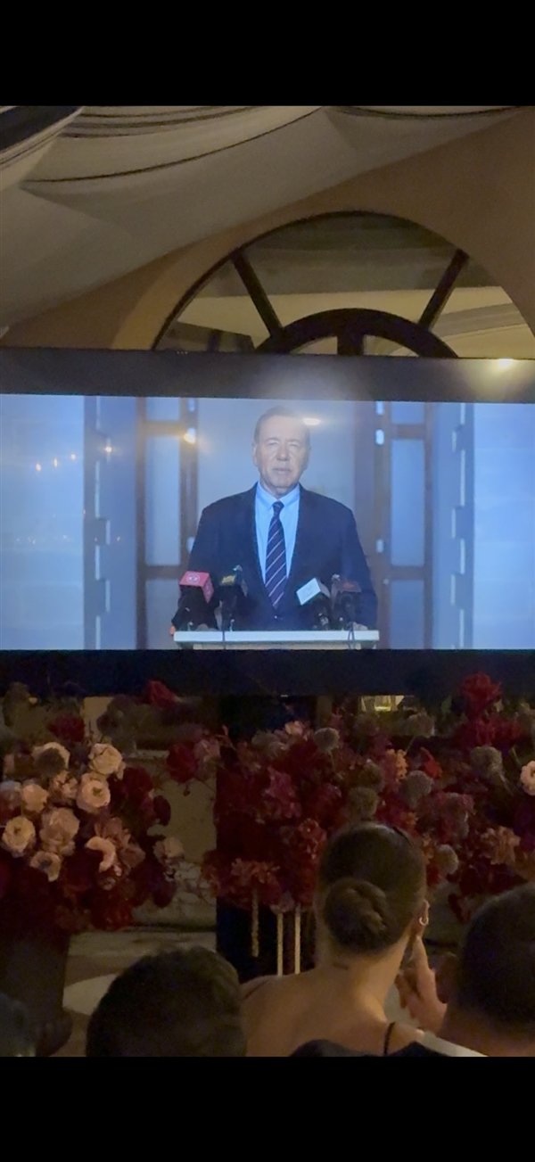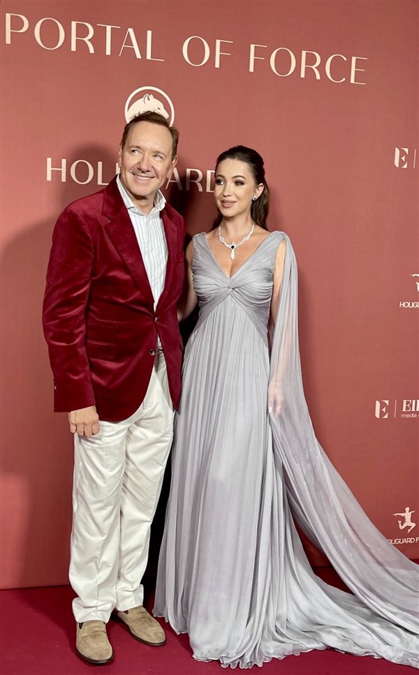 该片的制作预算为一千万美元,来自富婆的赞助,去年便在墨西哥拍摄完毕。Elledgy传媒集团创始人加夫里洛娃(上图右)作为投资人与赞助对象凯文·史派西(上图左)双双亮相昨晚在威尼斯奇普里亚尼酒店举办的宣发活动: