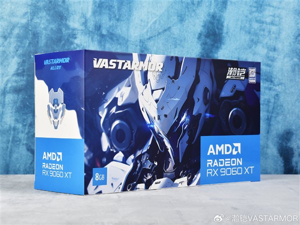 快科技8月31日消息,瀚铠官方放出了一组有关RX 9060 XT合金显卡的官方图赏,其中值得注意的是,这款显卡的包装采用了蓝色的Radeon标志,在AMD显卡产品中很少见。
