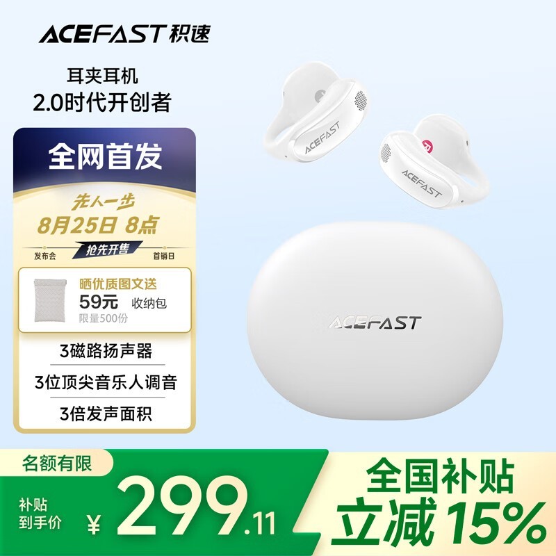 积速ACEFAST聚音环耳夹式蓝牙耳机2025新款运动跑步耳机