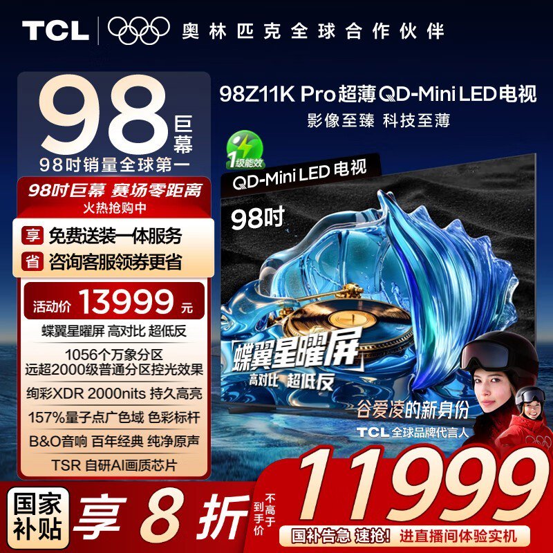 TCL巨幕电视98Z11K Pro 98英寸QD-Mini LED大屏电视限时特惠