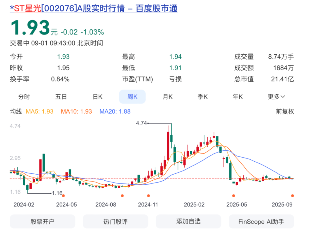 这笔收购目前来看并不成功。今年4月,星光股份“披星戴帽”,一度被实施“退市风险警示”处理。星光股份实际控制人、董事长戴俊威承诺: