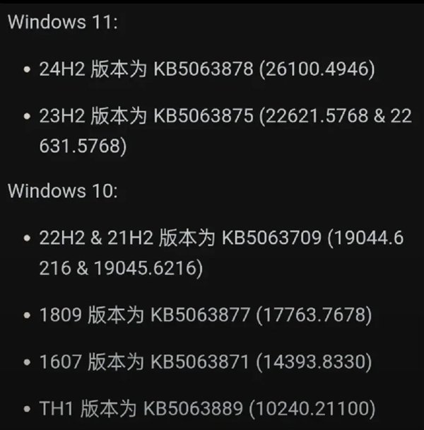前段时间Windows 11更新(Windows 11 24H2对应KB5063878,受影响的版本看下图)导致我的硬盘出现故障,4TB多的数据只找回20MB,相当于全军覆没。