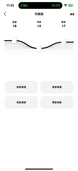 通过Bose APP可以对音箱进行操控和信息的查看,功能界面一如既往的简洁,可以查看音箱的剩余电量、蓝牙设置、音箱调节、均衡器设置和快捷操作和产品教程,当然,也可以切换歌曲。