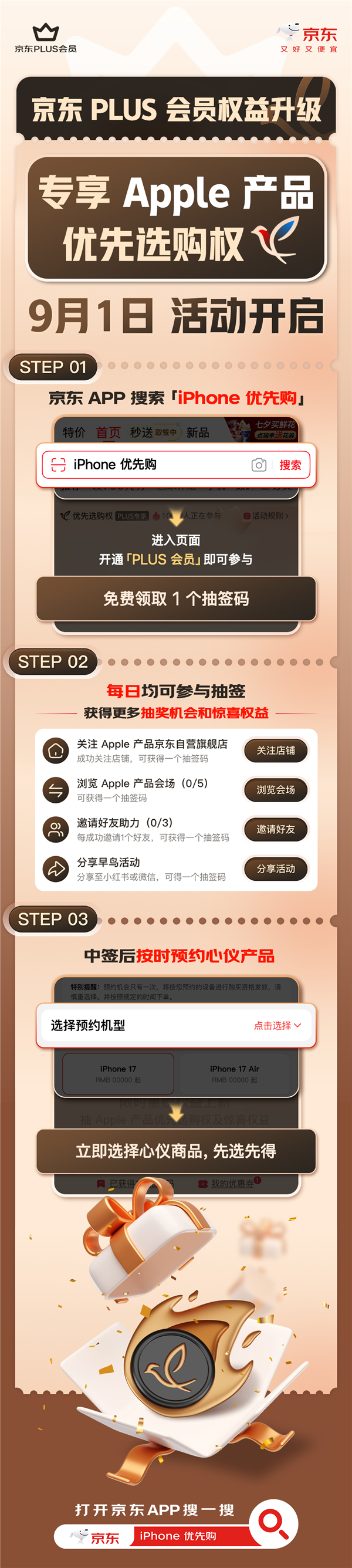 对此,京东PLUS会员今天官宣推出“Apple产品优先选购权”,今天已经正式开启相关活动。