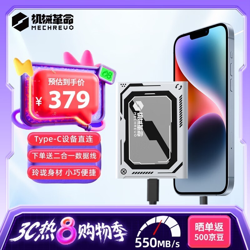 机械革命K500移动固态硬盘1TB灰色限时优惠