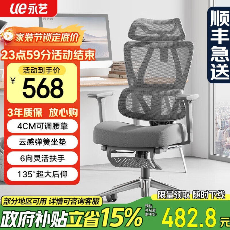 永艺沃克Pro人体工学椅482元限时抢