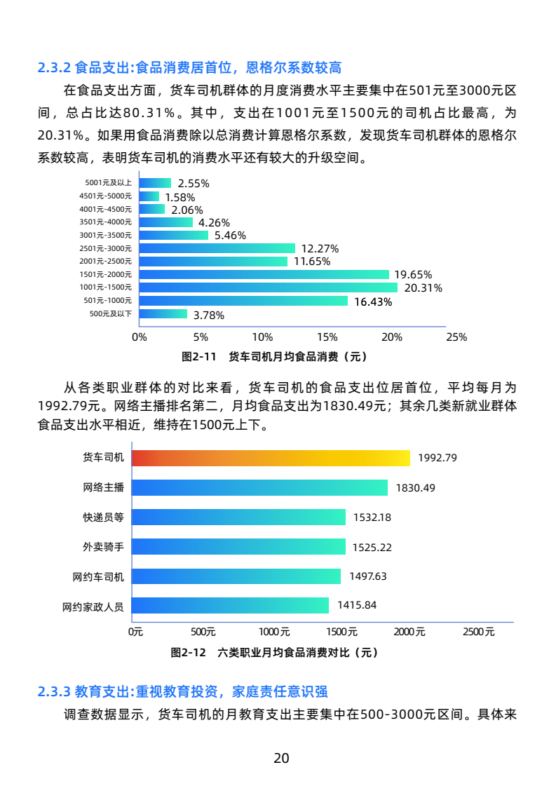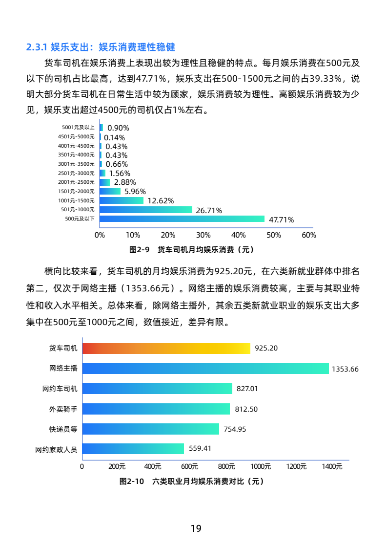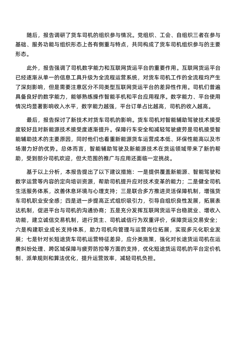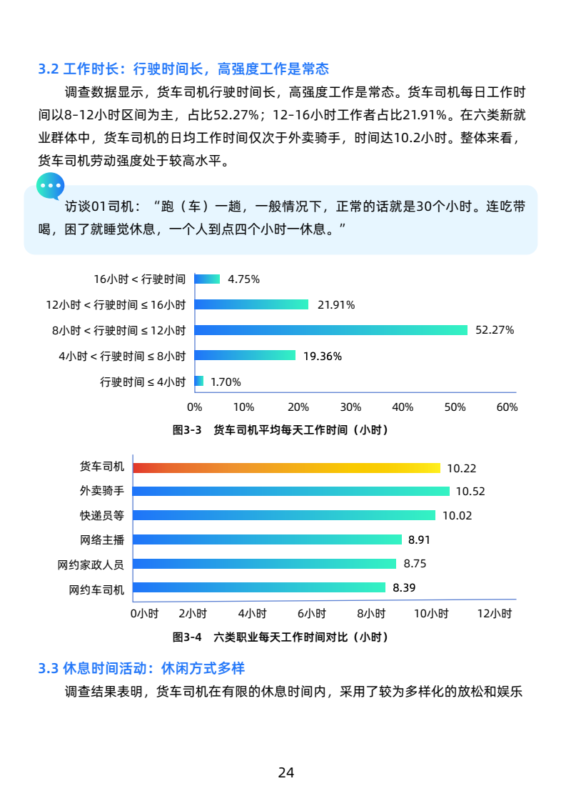 司机月均毛收入19051元,净收入10512元,高于新就业群体,长途司机收入更优。工作强度大,日均工作超10小时,每月休息少于4天,行业高压。