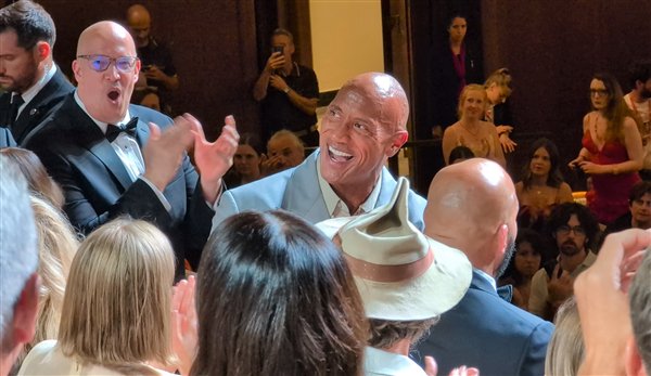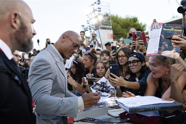 威尼斯电影节在当地时间周一晚间迎来巨石主演的体育传记片《粉碎机》首映,观众为他的表现喝彩,起立鼓掌达15分钟之久,这是电影节开幕以来最长鼓掌时间。