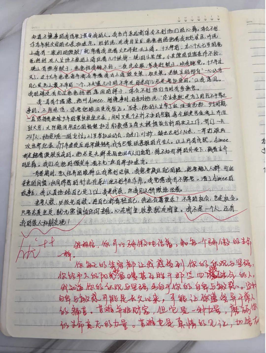 语文老师给万逸雯的作文评语高中语文老师在那篇作文后的评语,给了她莫大的勇气:“你的乐观与坚强或许源于自卑与敏感。苦难并非财富,但它是磨砺生命意志的力量;苦难也是真情的见证,加倍在你父母身上的痛苦,又会转化为爱,加倍地赠予你……”这句评语如同一颗种子,在她心底悄然发芽。