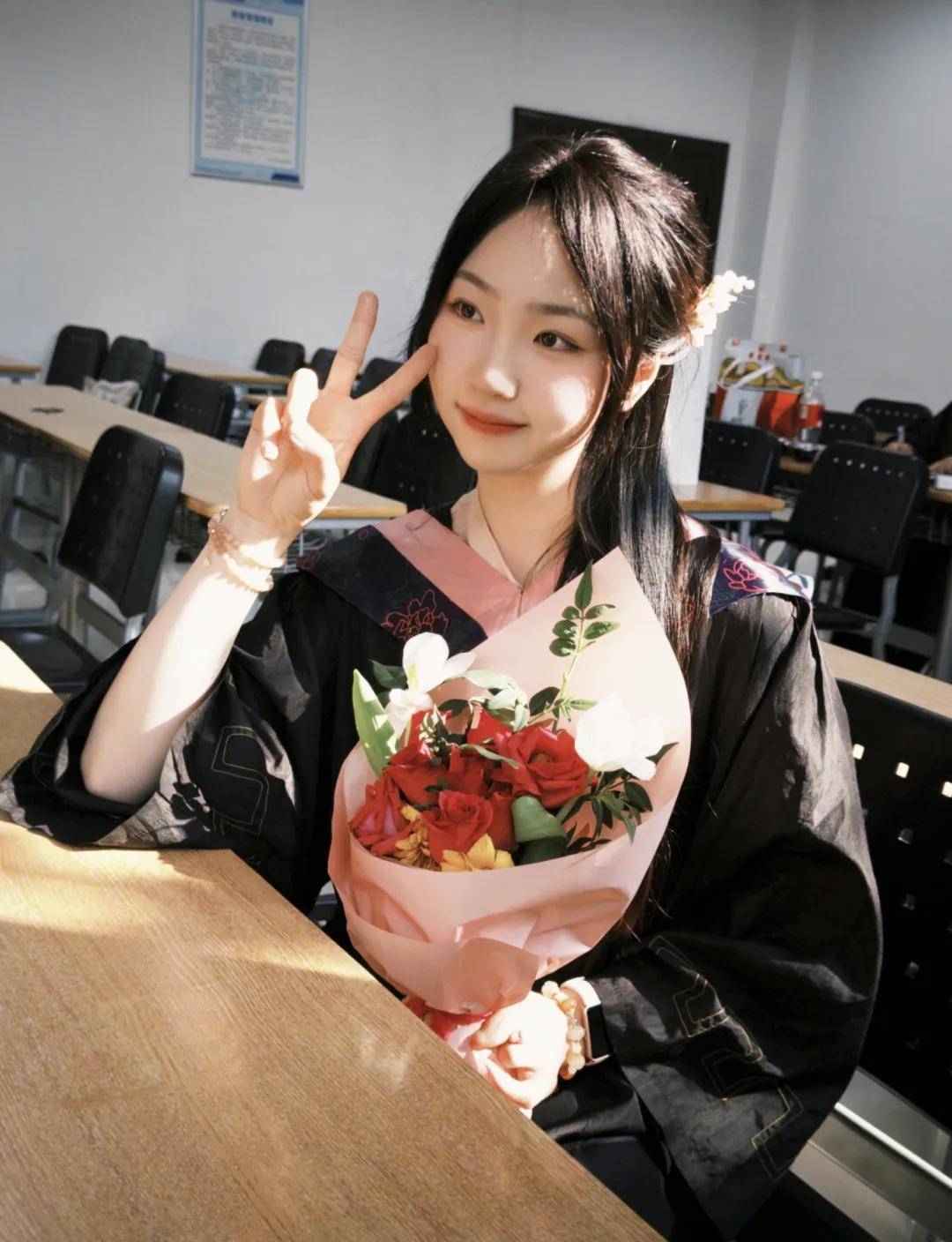 万逸雯穿着新中式服饰拍摄毕业照