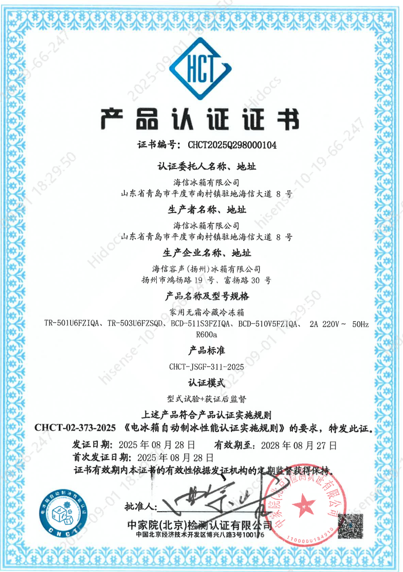 日前,经中国家用电器研究院严格检测与评估,海信冰箱旗下五款产品成功通过“电冰箱自动制冰性能认证”,并获颁认证证书。此次获证不仅是对海信冰箱自动制冰技术性能的肯定,更是其精准洞察并响应现代都市人群,特别是年轻人“早C晚A”生活方式的又一创新成果。