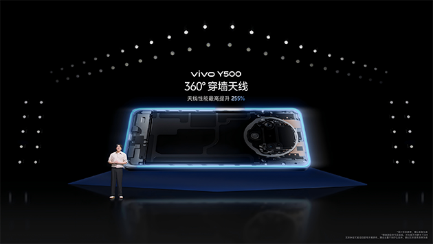 vivo Y500采用360°穿墙天线布局,整体信号接收最高提升255%。通过AI网络智选功能,vivo Y500可在电梯、地库等弱网场景下切换至更好的网络信号,且通过了国家无线电监测中心认证,信号能力达到五星级。