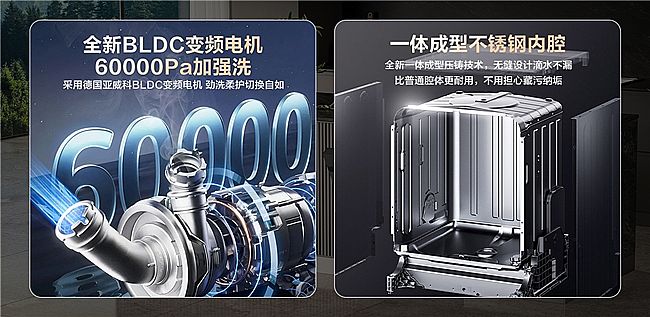 海信零菌洗碗机C507iPro不仅在清洁效果上表现卓越,还特别注重设备的耐用性,致力于为用户提供长期、稳定的使用体验。该机搭载的德国亚威科变频电机,拥有高达60000Pa的超强水压输出,能够持续稳定地提供强劲动力,轻松应对各类顽固污渍和复杂清洁任务。与传统电机不同,变频电机的水压不仅提升了洗净效果,还大大延长了设备的使用寿命,洗净指数高达超1.26,远超1.12的国家一级标准。变频电机不仅提升了清洗效果,还能做到连续工作6000小时无故障的运行,将省心和耐用落实到生活的实处。