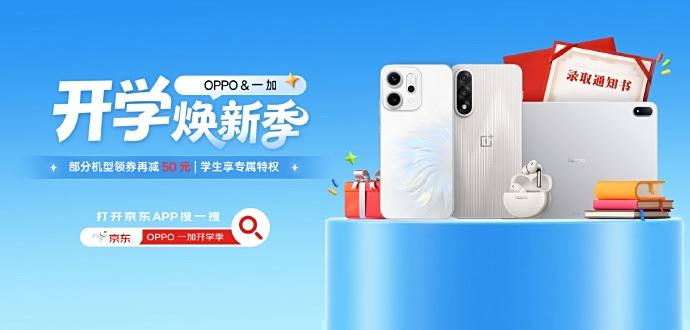 【天极网手机频道】随着新学期的到来,OPPO、一加联合推出了“开学焕新季”活动,为学生用户带来了多重专属福利与购机好礼。即日起,通过某东平台购买指定机型,不仅能享受学生专属价格,还能领取购机补贴与实用好礼,助力新学期学习与娱乐全面升级。