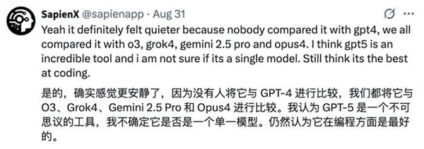 GPT-5表现非常出色,是目前当之无愧的MVP。
