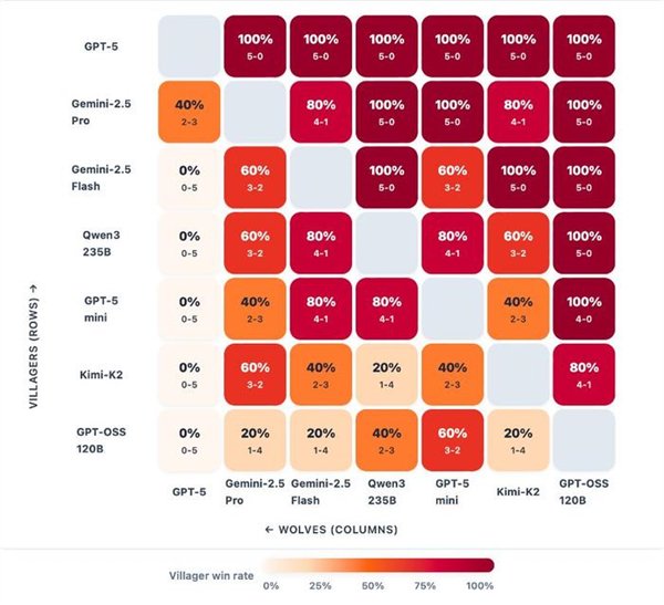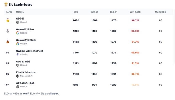 一群AI玩狼人杀,GPT-5断崖式领先,胜率达到了惊人的96.7%。