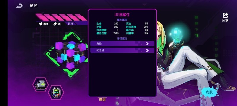 角色升级后闪避属性提升10%,基础攻击力55点,位列全游戏第二梯队,仅次于噪音,与阿米尔持平。