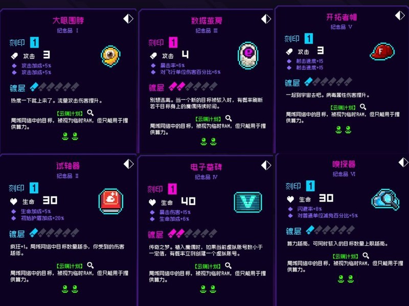 副UP此次的紫色纪念品是毒二套装对群效果的关键,能在骇入时额外攻击多个目标,且算力越高概率越大。建议将镀层提升至5到6层,大幅提升对群能力。