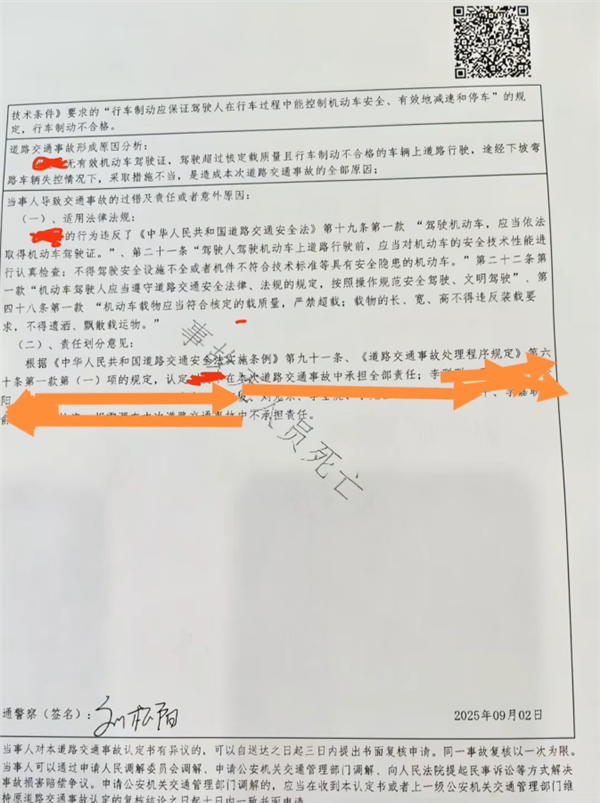 小米YU7车主最新透露,此次交通事故的责任认定书已正式出具,经相关部门判定,水泥罐车一方需承担事故全部责任。