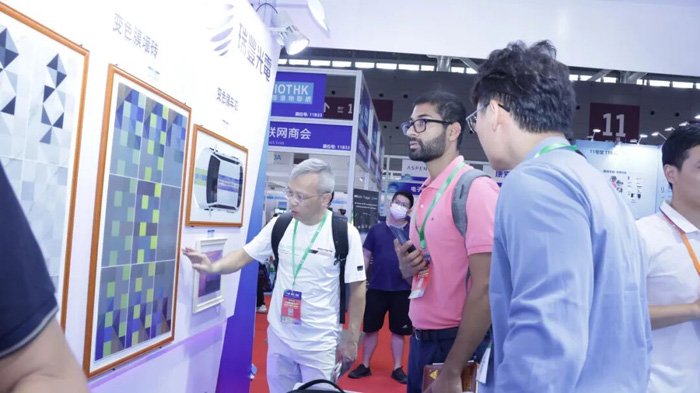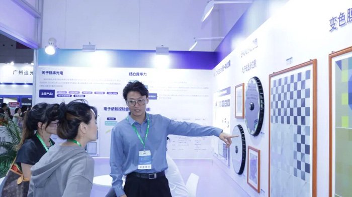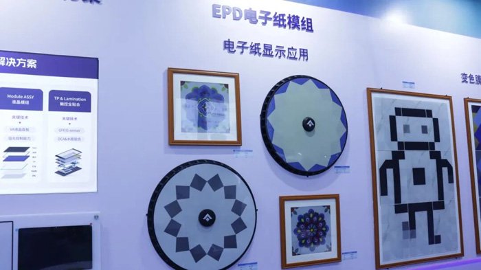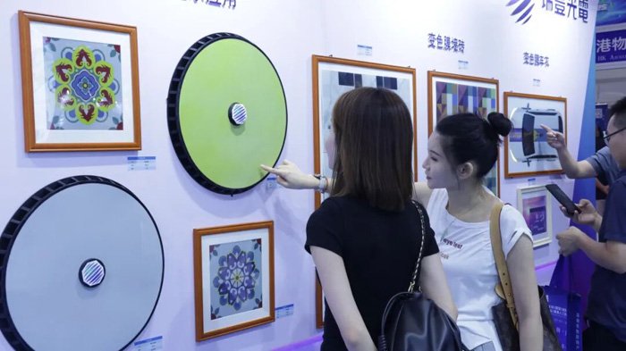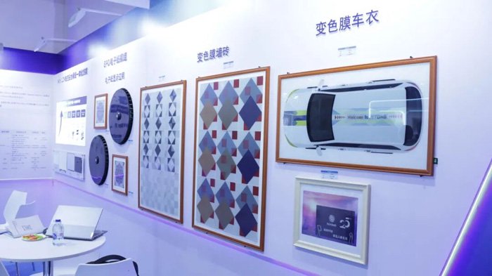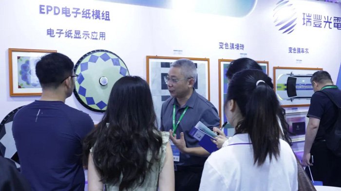 瑞丰EPD电子纸模组系列首次亮相,变色膜车衣、变色膜车轮毂、变色膜墙砖、变色膜敦煌图腾艺术相框等一系列创新产品方案的展出,吸引了众多现场观众驻足交流。
