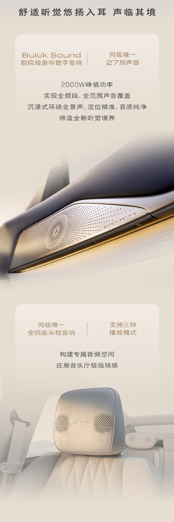 音响方面,至境L7首发Buick Sound剧院级27扬声器音响,峰值功率可达2000W。
