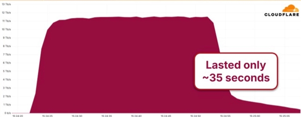 最初,Cloudflare表示这次11.5Tbps的洪水攻击持续了大约35秒,主要来自Google Cloud,不过该公司后来更正说,这次攻击实际上来自多个物联网和云服务提供商的组合。
