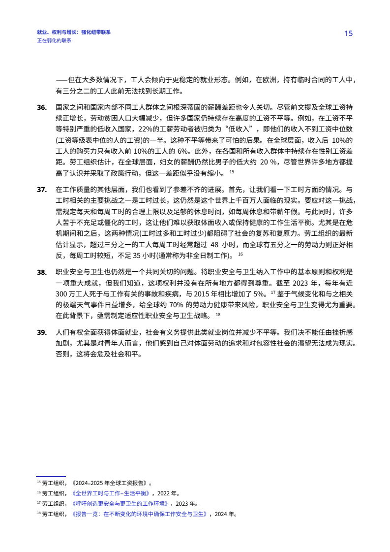 我们肩负使命,我们拥有工具、掌握知识。我们现在需要的是决心——去深入倾听,去付诸行动、促进政策协调,并再次认识到我们可以构建一个公正的劳动世界。我相信,这份报告将助力我们携手前行,迈向社会正义,实现持久和平。