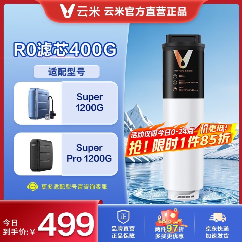 云米滤芯适配净水器Super 1200G反渗透复合滤芯400G限时特惠338元