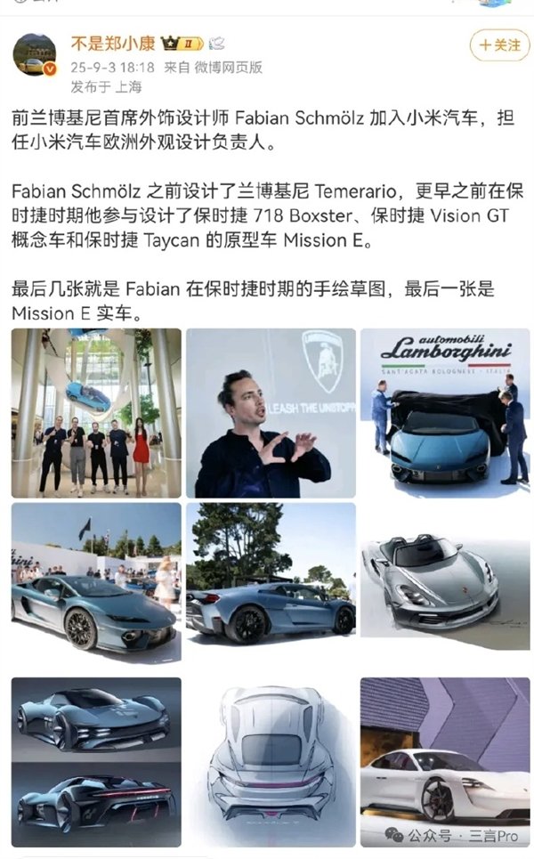 快科技9月4日消息,有消息称兰博基尼首席外饰设计师加盟小米,这引来了网友的围观。